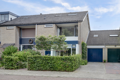 Het huis ligt aan een ventweg, parallel aan de Nieuwe steeg., met aansluitend de voortuin en de oprit naar de garage. De noord-oost gelegen achtertuin is verzorgd en mooi groen. Door de diverse terrasjes is er de hele dag ruimte om in de zon of schaduw te zitten. De tuin is ook via een achterom toegankelijk.